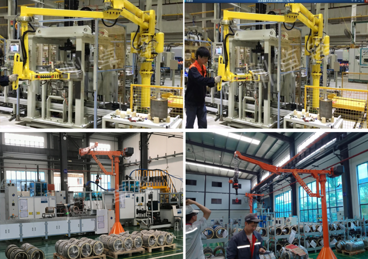 广州卓锋设计制作多套新能源电机搬运设备,采用气动助力机械手、智能提升机搬运电机外罩,电机转子,电机定子等整机或部件。轻松,灵巧,稳定是新能源电机生产线必备设备。